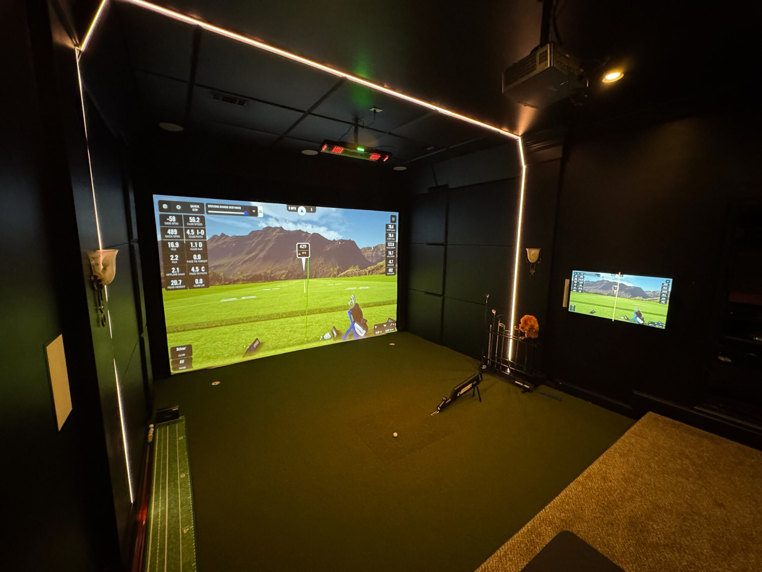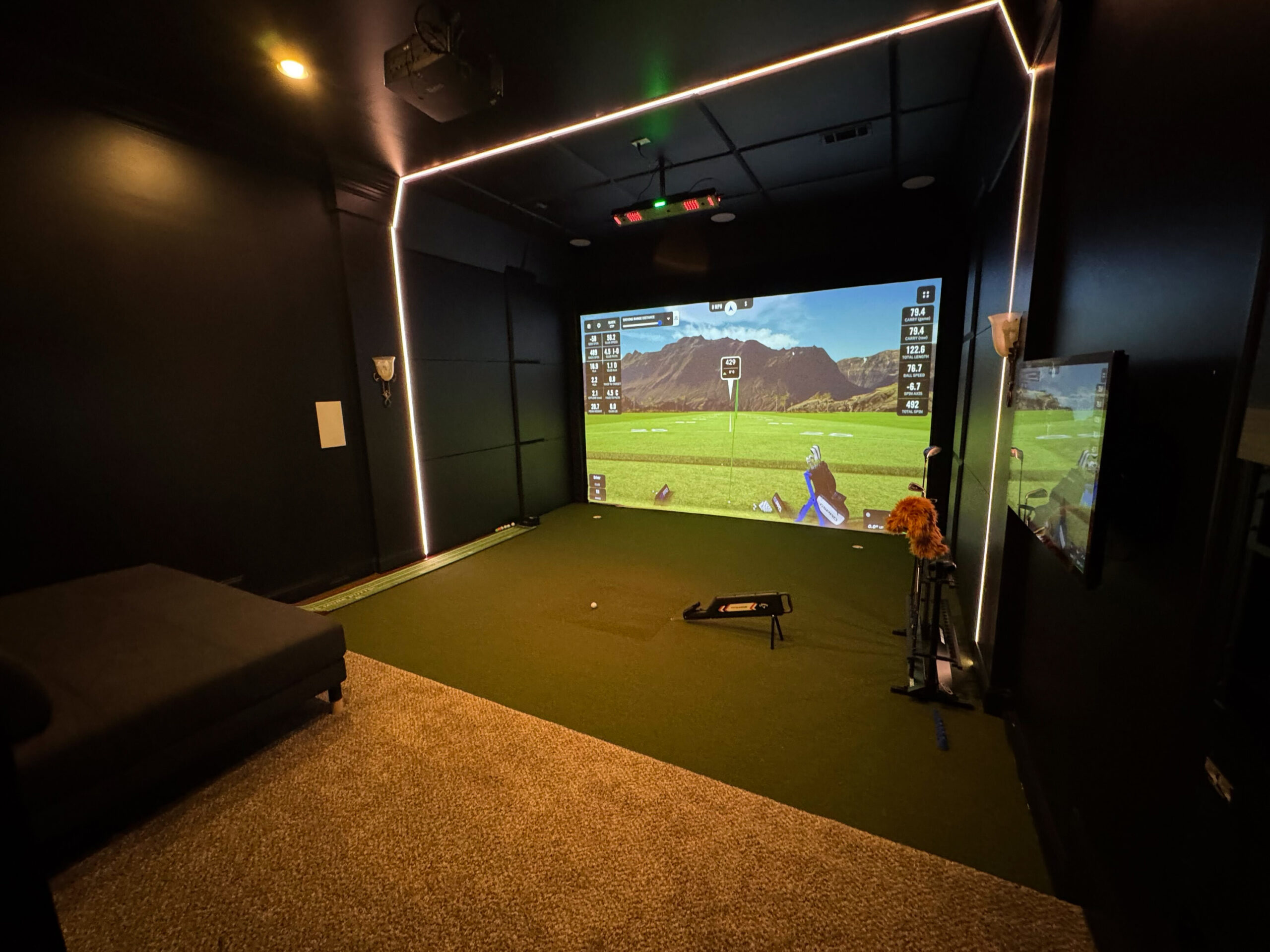 Pro Luxe Tape Lighting outlines the simulator bay, creating depth and dimension